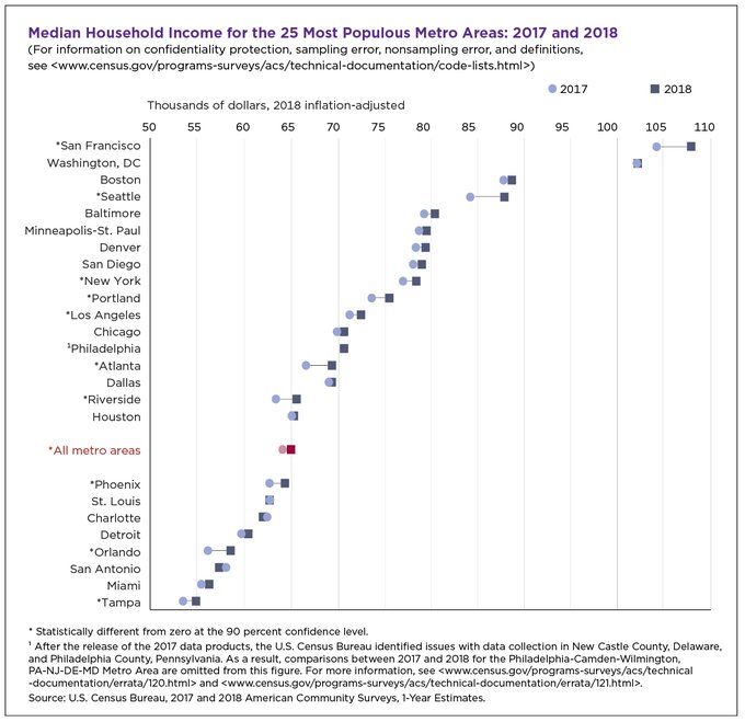 The median income in San Fransisco is significantly higher than the rest of the United States.