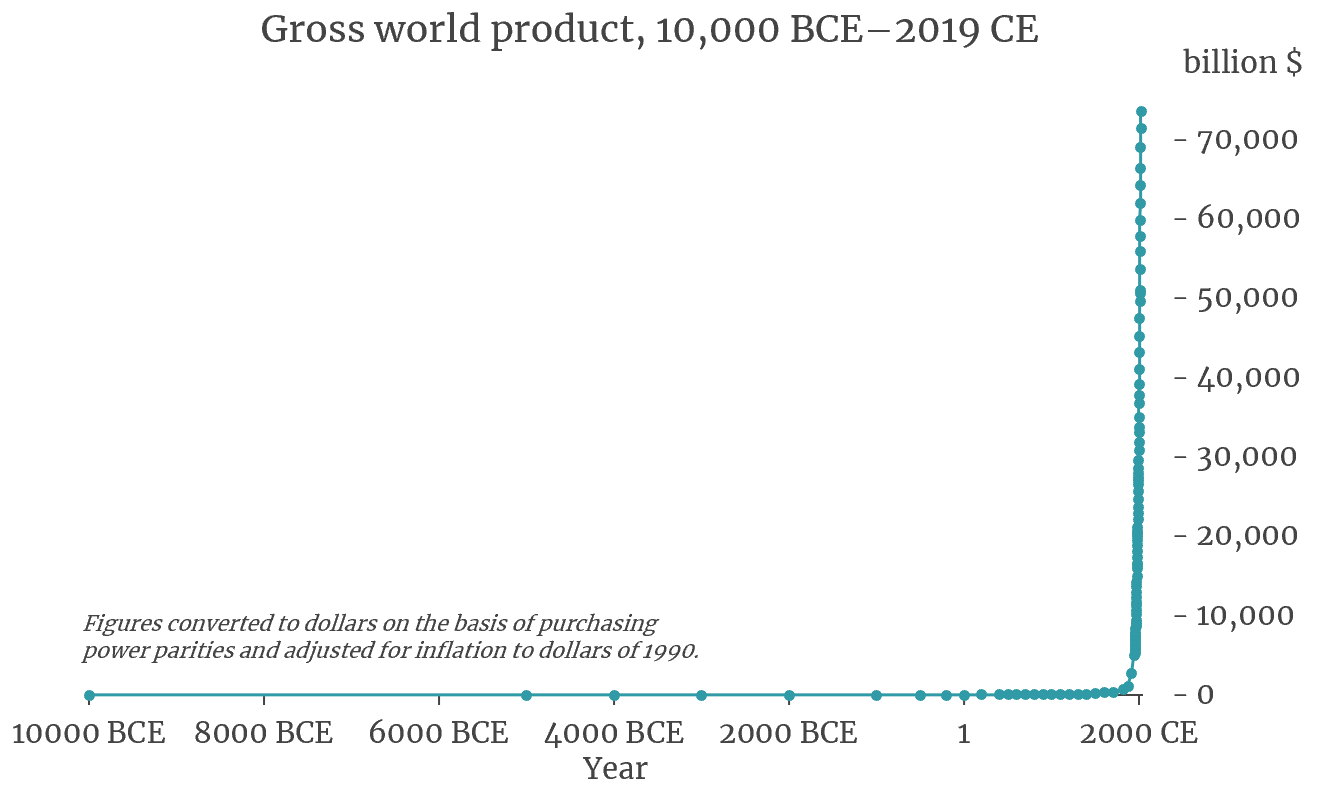 This lengthy post is a fascinating analysis of the history and projected growth of human economic output. Dealing with the recent explosion in GDP is one of the difficulties when trying to forecast economic growth.