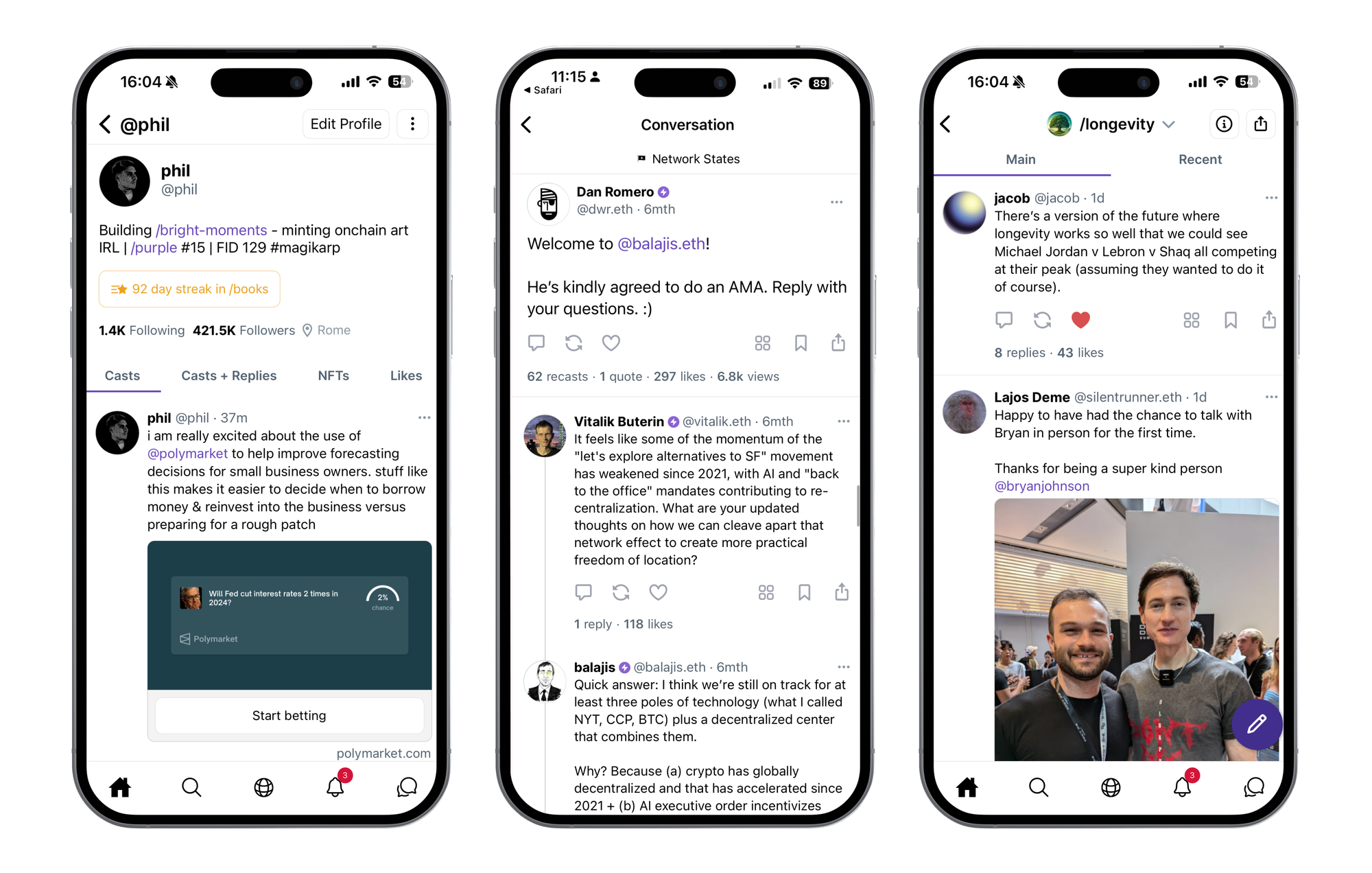 Farcaster is now my main social media platform. It works like Twitter, except the data is publicly available and every user has a cryptocurrency wallet embedded into their profile. These two simple changes open up a range of possibilities for the types of experiences that can be built. The beauty of Farcaster is the ability to take actions directly in the feed, like buying a subscription, purchasing media, or sending money to a friend. Having all of this functionality in one app and tied to a single source of identity is quite powerful.